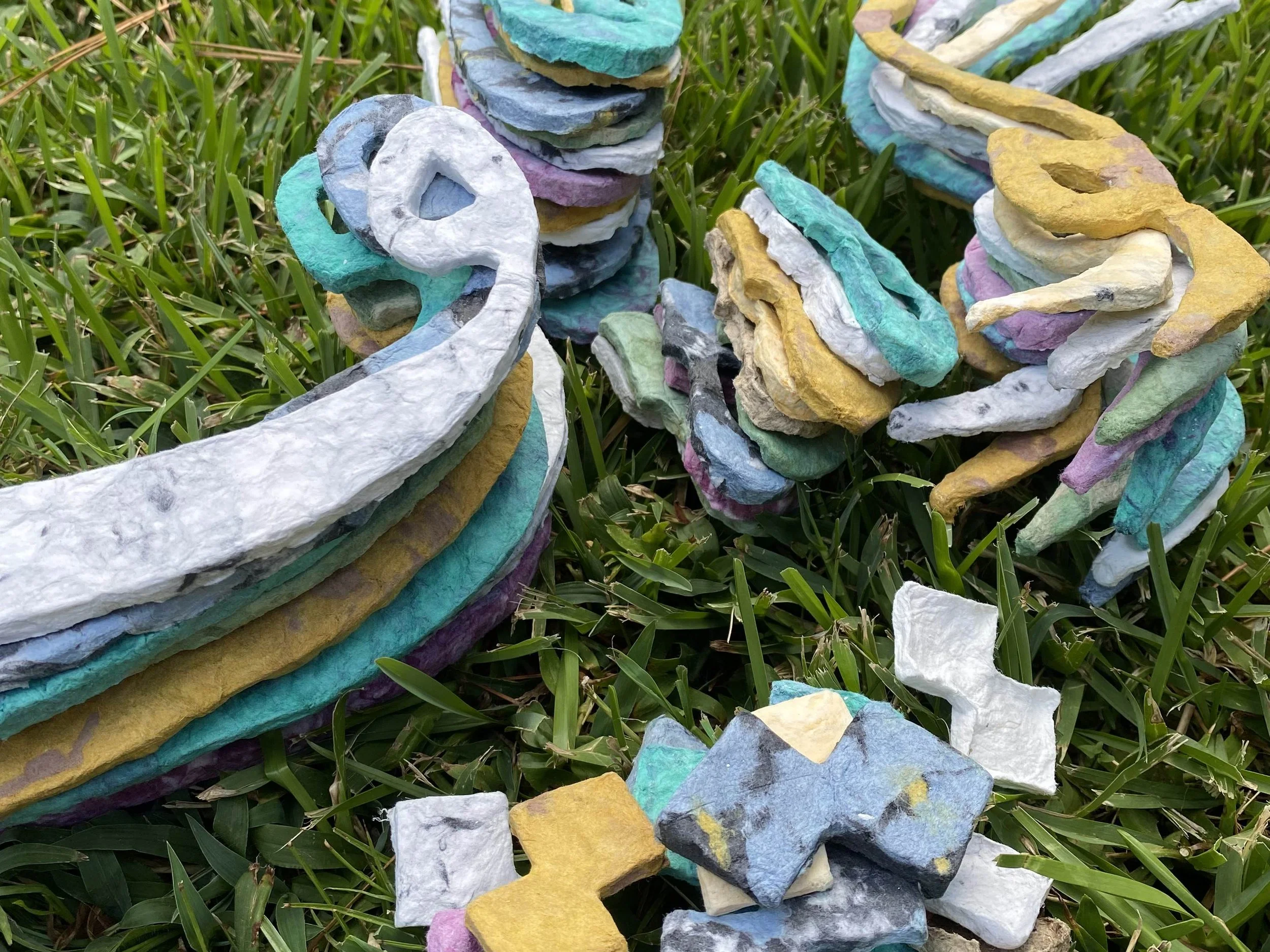 In Persian mythology, Qaf is the farthest, most unreachable mountain—a threshold between the known and the unknown. By casting the word itself into fragments of paper, I recreate the presence of this imagined place while emphasizing its fragility, weight, and portability. The work becomes both a personal geography and a meditation on longing, distance, and the shifting idea of home.